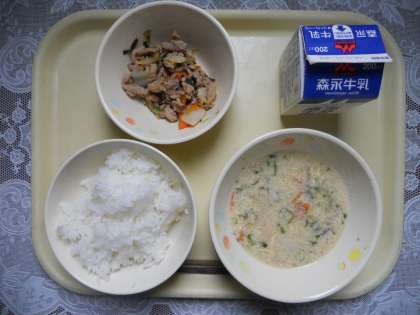 12月4日(月)の給食献立は、たまごトック、豚キムチ、ごはん、牛乳でした。