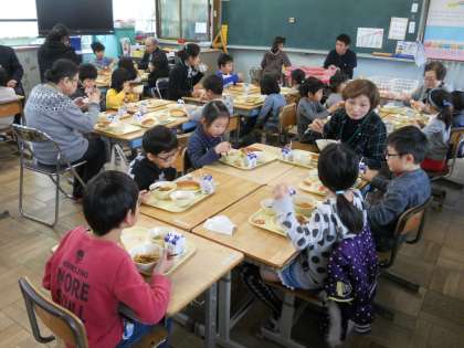 給食も一緒に食べていただき、1年生は大喜びでした。きっと心に残る一日になったことでしょう。