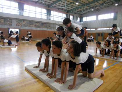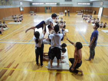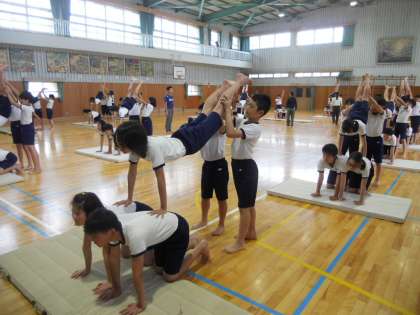 3時間目に6年生が、組体操の練習をしていました。