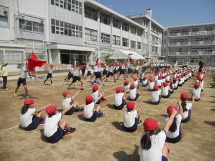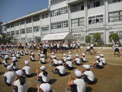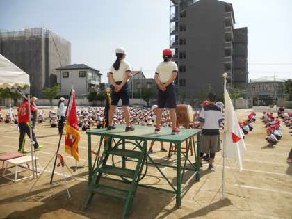 応援団のエール交換を含む開会式の流れと住北体操を練習しました。