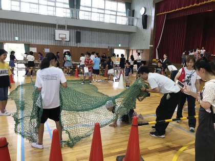 学年合同で体育館に設営した「住北スポッチャ」です。さすが、6年生の企画です。体育館を有効に使い、多様なチャレンジコーナーが大人気でした。