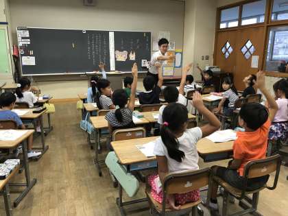 1年1組の鈴木先生が、道徳の出張授業をしていました。
