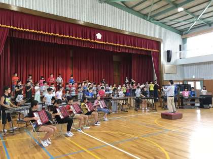 20日(木)の見まもり隊感謝の集い、そして、21日(金)の校内音楽会に向けて、体育館での合唱・合奏の練習です。