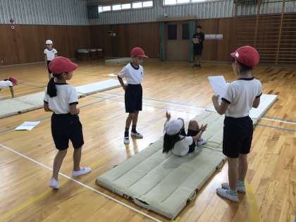 4人で1グループを組み、技のポイントもよく意識しながら仲良く学び合う姿に大きな成長が見られます。