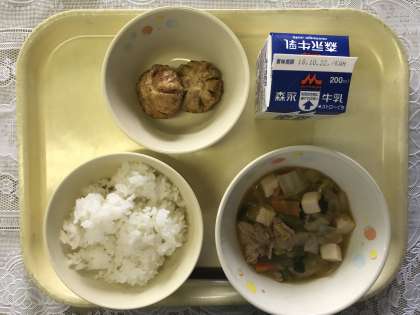 10月15日(月)の給食献立は、豆腐チゲ、パオシュウ、ごはん、牛乳でした。