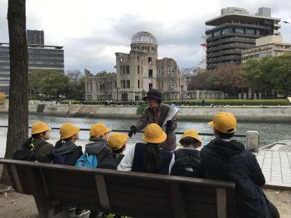 一番感心したのは、広島平和記念公園での学習で、寒風吹きすさぶ中での慰霊碑めぐりでは、ボランティアガイドさんとの出会いを大切に、話をしっかりと聴き取ろうとする子どもたちの姿でした。