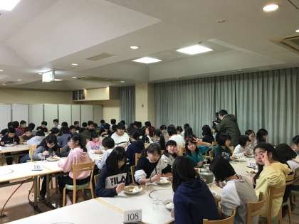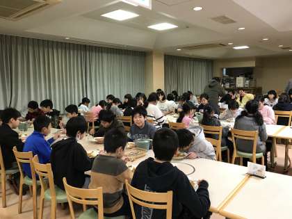 バス移動の疲れも感じさせず食欲旺盛、笑顔満開です。