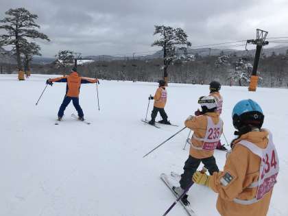 コーチの指示を忠実に守り、全員が揃うまで待ちます。今日のレッスンの終盤には、左右の曲がり方を教えていただきました。