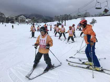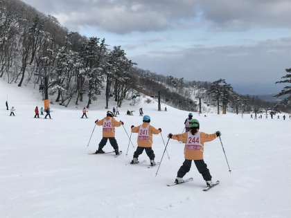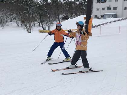 昨日の復習を済ませ、左右の連続回転に挑戦。長い距離をハの字のプルークで滑ります。