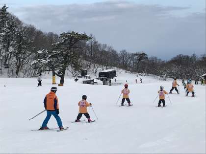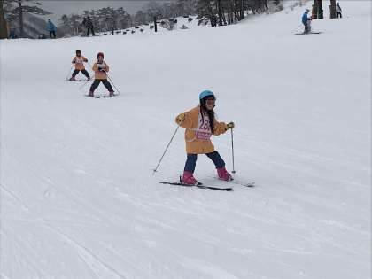 たくさんリフトに乗って、山の上からの滑走です。長い距離をどんどん滑っています。自信がついてきたね!