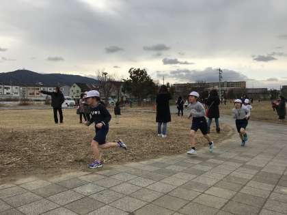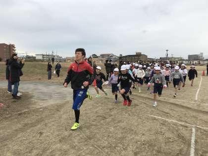 3年生のマラソン大会の様子です。最初にスタートした3年生は、大東中央公園の外周を2周(約1400m)走りました。