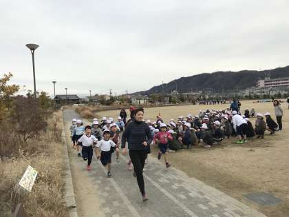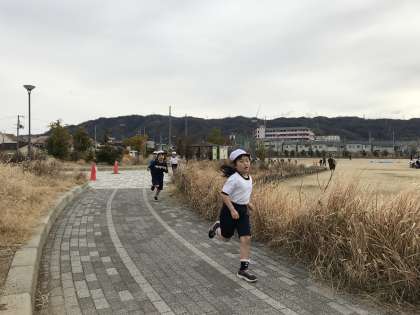 厳しい寒さにも負けず、登校後すぐさま体操服に着替え、朝のマラソンをがんばり抜いた1年生。本当にたくましく成長しています。