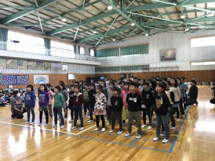 2つのパートに分かれて、上手に歌い上げていました。友だちの大切さが、心にしみる歌声でした。とても素敵でした。