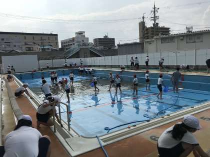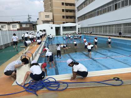6月24日(月)が本校のプール開きです。それに合わせて、今日、プール掃除をしました。
