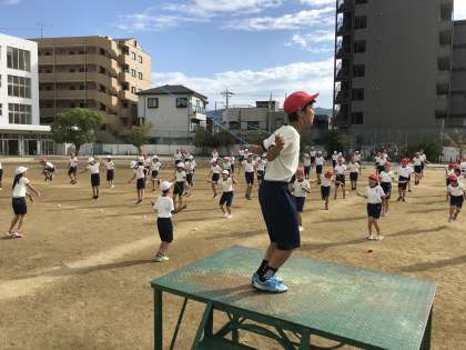 朝のなわとびの様子です。前に出て、リズムなわとび等の模範を見せてくれている体育委員の子どもたちが、とても頼もしいです。