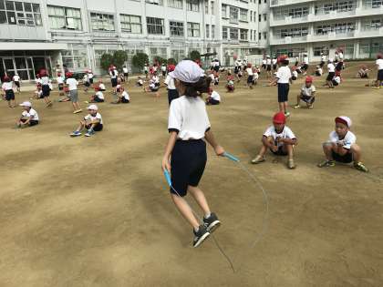 なわとびの技術はもとより、短なわの後片付けに時間のかかる低学年の面倒も進んでみてくれています。