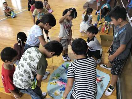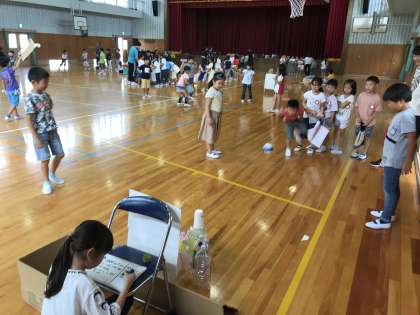 教室に、箱がたくさん集められていたのは、この日のためだったのですね。こつこつと手作りでがんばってきた成果が、1年生の楽しそうな笑顔に表れていました。