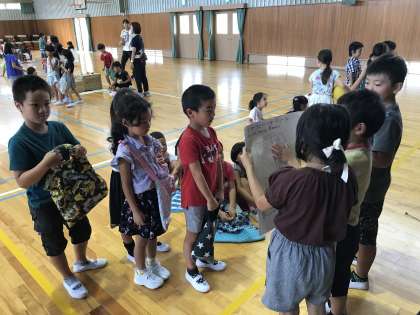 1年生を招待しての「おもちゃランド」を体育館に開設しました。