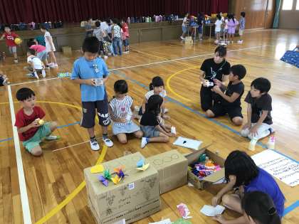 各グループで手作りのおもちゃ(遊びコーナー)を設け、遊び方の説明など自分たちで運営しました。