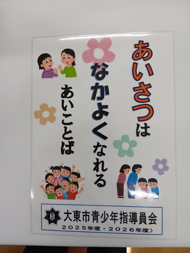 という標語が書かれてあります。本当にそうですね。あいさつをするということは、「なかよくしましょう」という気持ちを表明していることだと思います。