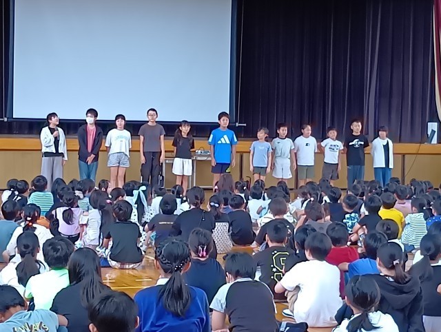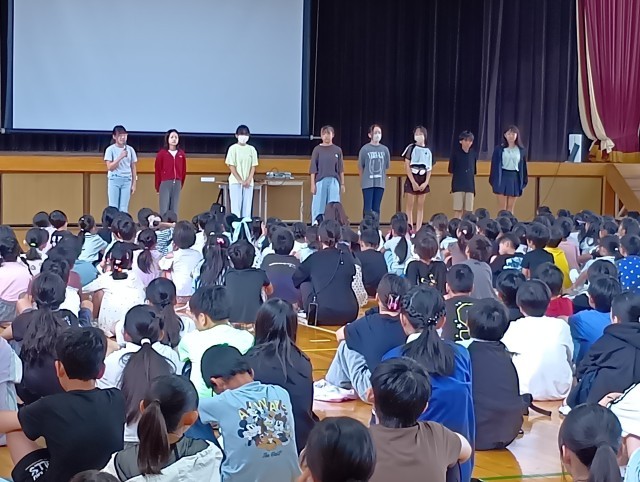今日は体育館で児童朝礼がありました。生活委員会からのアピールに続いて、後期の各委員会の委員長と、児童会役員の認証がありました。みんな、住道南小学校がより良い学校になるよう、頑張ってくれそうです。頼みましたよ!