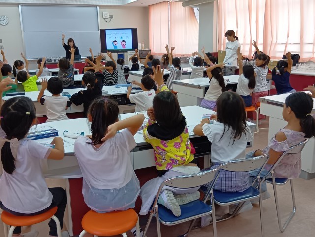 今年度から、月曜日は1年生が給食後すぐに下校する日が多いので、何回か「放課後子ども教室」を開くことにしました。希望者に対して、企業やボランティアの方が来られて、無料で体験授業をしてくれるというものです。