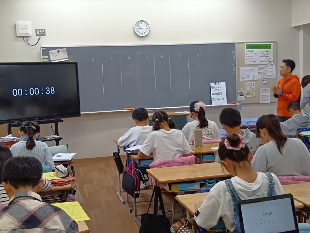 まず始めの5分でビジョントレーニングと100マス計算で算数スイッチオン!そして今日の学習の目標などの説明と準備をして、スタート。