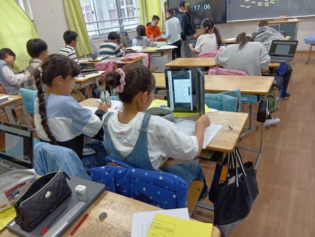 みんな自分のペースで学習を進め、テストをクリアしたら次のステージに進みます。自分にぴったりの課題だから、時間いっぱい集中しています。目標のステージまで行けた人は、他の人にアドバイスしたりもします。