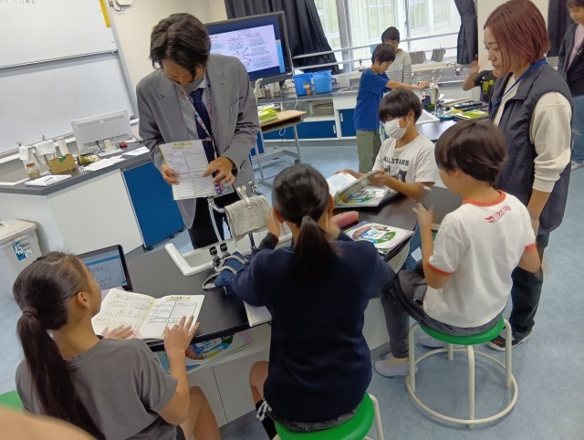 まず、今日はどんな方法で考察するかを決めます。模型をつくる?VRゴーグル使う?ボールで実演する?資料や絵本を見る?どれも楽しそうな方法ばかりですね。暗室の代わりに物入れの中で実験しているグループもありますね。やり方に悩む人には「先生と一緒コース」もあります。