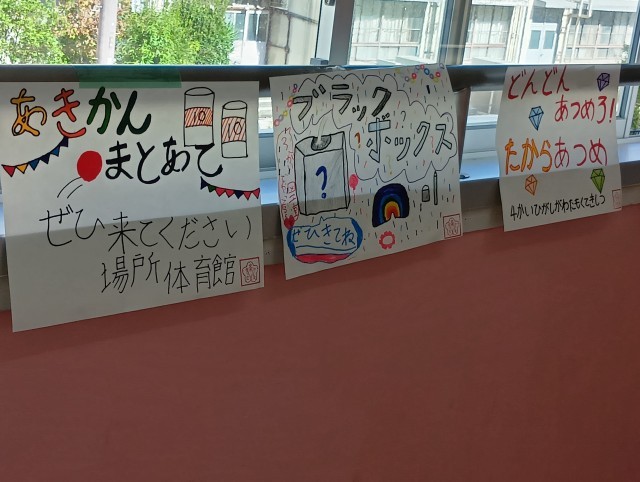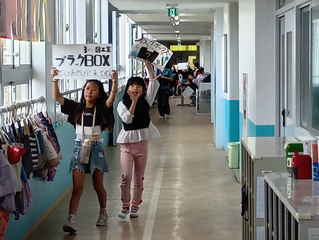 おうちの人たちもたくさん来てくれて、お店に入ってくれます。受付やルール説明に大忙し。看板を持って呼び込みにも力が入っていますね!