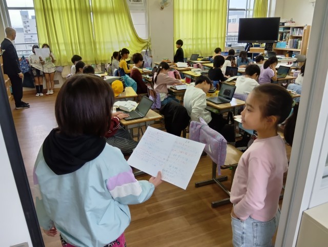 単元は、「慣用句」です。自分が決めた一つの慣用句の意味を調べ、自分の好きな方法でみんなに説明します。方法には、文章やスライド、劇、マンガなど様々。人とは違うことを人とは違う方法で説明するので、自分でやるしかありません。ちょっと難しいかな?と思ったけど、みんな一生懸命自分の課題に取り組んでいます。発表が楽しみですね!