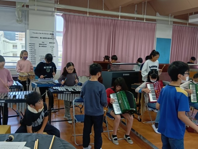 今日の器楽合奏のまとめ演奏の様子です。みんな楽しそうですね!来週は2組さんとも一緒に練習をする予定だそうです。きっと迫力のある演奏になるでしようね。楽しみだ。