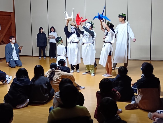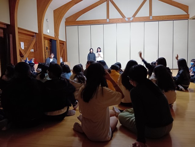 本日最後のアクティビティら、レクリエーションです。折り鶴の神のメッセージから始まり、なぞなぞ、ダンス、「タコとたい焼き」ゲーム、じゃんけん大会など、盛りだくさんでした。そして最後は、家族からのお手紙をもらって読みました。おうちの人がこっそり書いてくださった手紙を、みんな笑顔で読んでいました。子どもたちにすてきなプレゼントを、ありがとうございました。