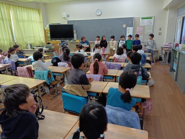 1枚目の写真は、2-2で、係活動の紹介をしているところです。表情がやる気まんまんですね~