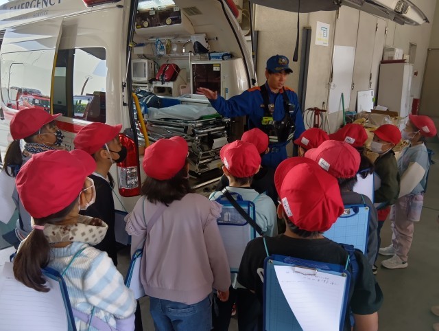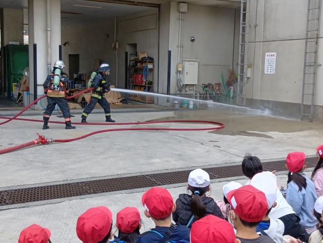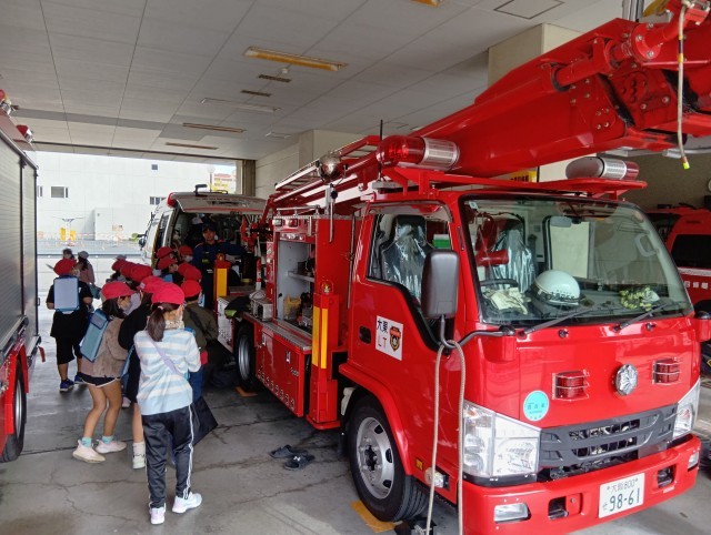 午前中に、歩いて消防署へ見学に行きました。消防車の中や、消防士さんのお仕事について見せていただきました。いつも訓練して、私たちの危機には出動してくれるみなさんには感謝ですね。消防署のみなさん、今日は忙しい中、見学させていただき、ありがとうございました。