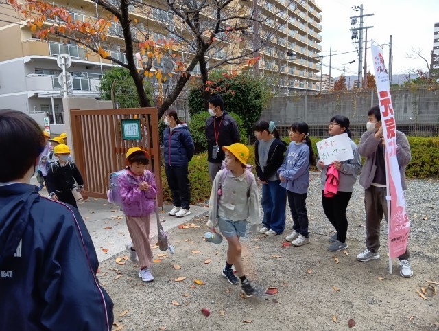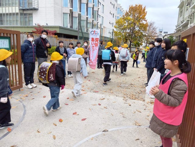 今朝は児童会の子たちが住道中学校の皆さんと一緒におはよう運動をしました。少しずつ寒さが強まってきましたが、元気にあいさつが響きました。
