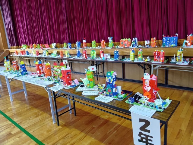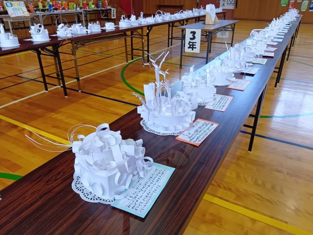 今日から期末懇談が始まりましたが、同じ期間中、体育館で図工作品展を開いています。写真は2枚目から順に6,5,4,3,2,1年生、クラブの順です。ぜひ、懇談の折にはご覧ください。