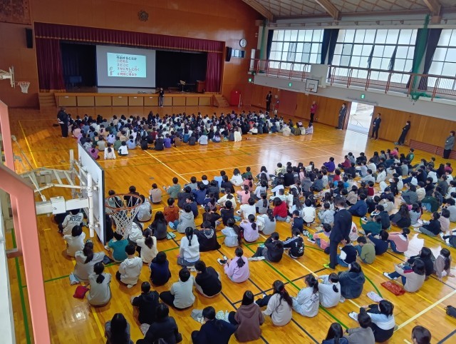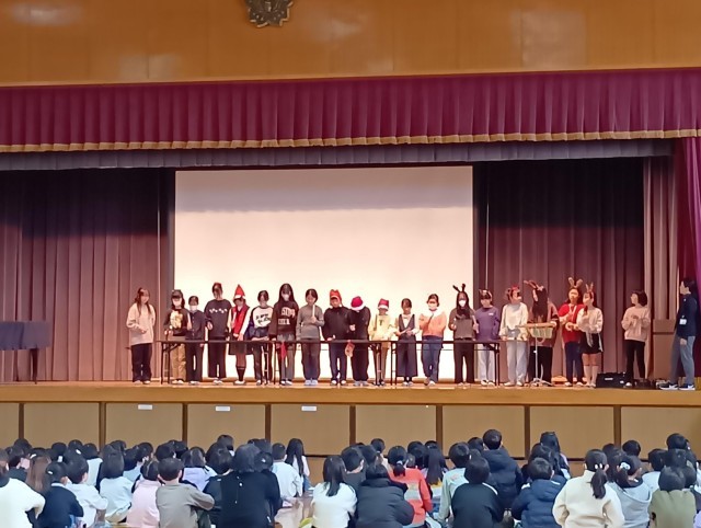 いよいよ明日から冬休み。終業式で私からは、2学期はみんなよくがんばりましたという話と、自転車・ゲーム・携帯電話は、使うときには気を付けないと大変なことになることがありますよという話をしました。また、生活指導の先生からのお話もありました。そしてそのあと、音楽クラブのみなさんがトーンチャイムの演奏をしてくれました。曲も音色も、クリスマスっぽくて、素敵でした。