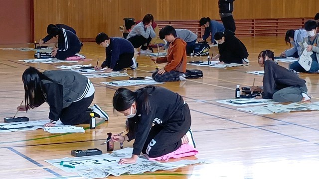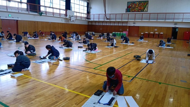 みんな、「一期一会」「七転八起」「優しい心」など、心に期する四文字を書いています。
