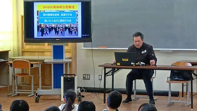 四條畷警察の職員の方が来られて、主にSNSの使い方について教えてくださいました。