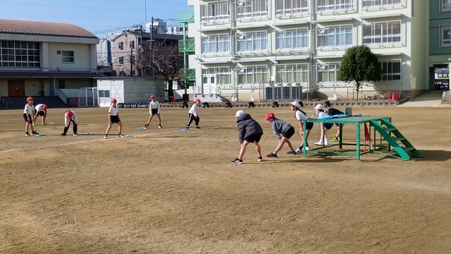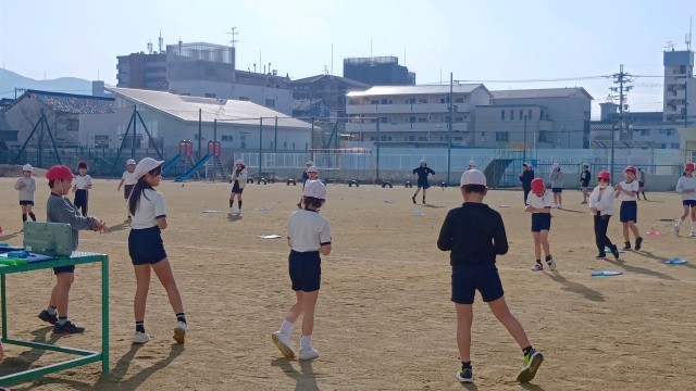 子どもたちは誰に言われずとも並んで、代表が前で指示を出すと、みんなで準備運動を始めました。えらい!
