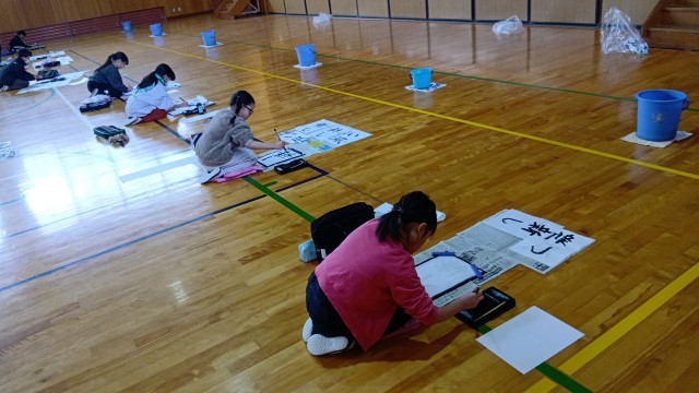 今日は5年生が書き初めです。
