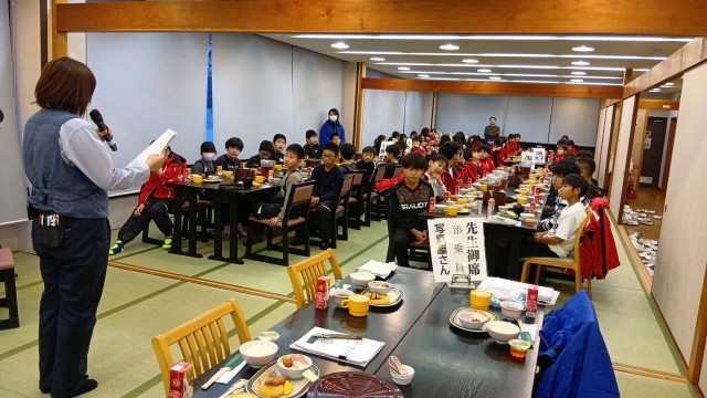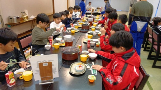 今朝はみんな元気に時間通り起きて朝の準備ができました。朝ごはんは、昨日と同様に食事係さんの配膳、退館式、いただきます と、滞りなくできました。