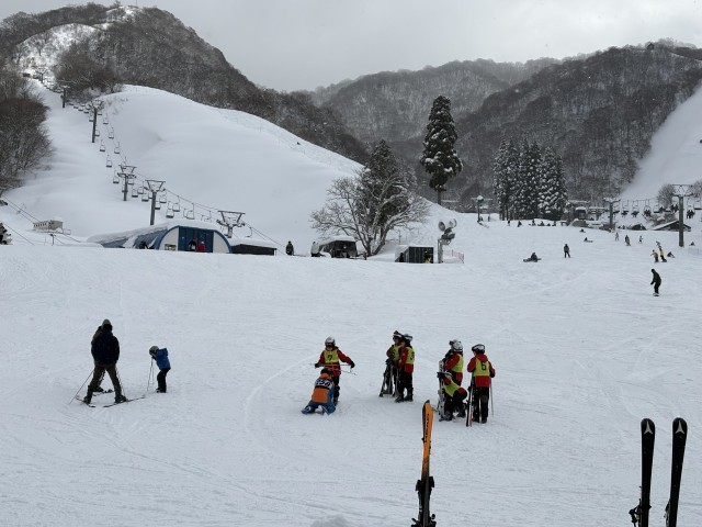 現地に到着し、予定どおりに、スキー教室を行っています。