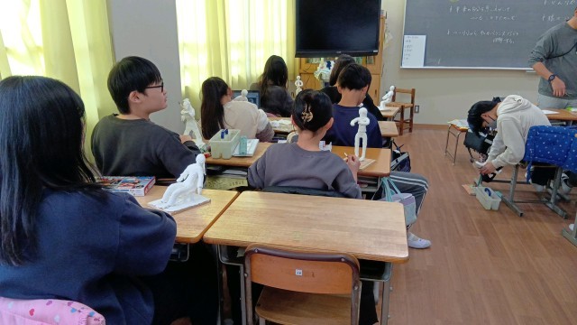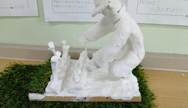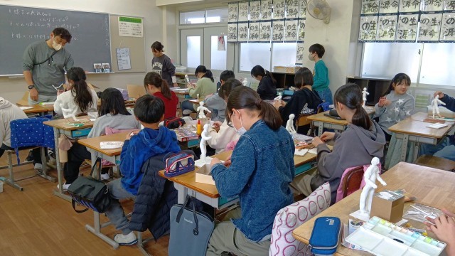 1組と2組が同じ作品をつくっていました。針金の心材を入れて、紙粘土で将来の自分を作っています。みんないろいろ工夫してつくっていますね。4枚目の写真の作品、とても気に入りました!