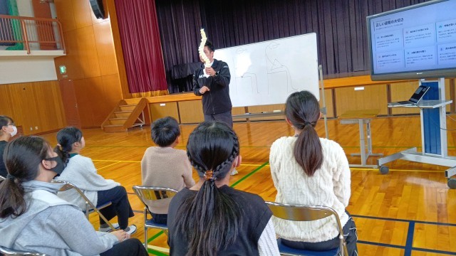卒業式の練習が始まるこの時期に、理学療法士の先生に「正しい姿勢」について授業をしていただきました。