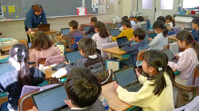 算数の問題をAIドリルで解いています。教室のあちこちで正解の音が鳴っています。ピポッと鳴るとガッツポーズをしている子もいます。「すぐに丸付けしてくれるからうれしい?」と尋ねると、「うん!」という返事が返ってきました。えんぴつを使って計算することの良さもたくさんありますが、その子にあった出題や即時採点などはAIドリルの得意分野です。いろんな方法の良さを生かして、一人でも多くの子どもに少しでもたくさんの基礎学力をつけていきたいです。