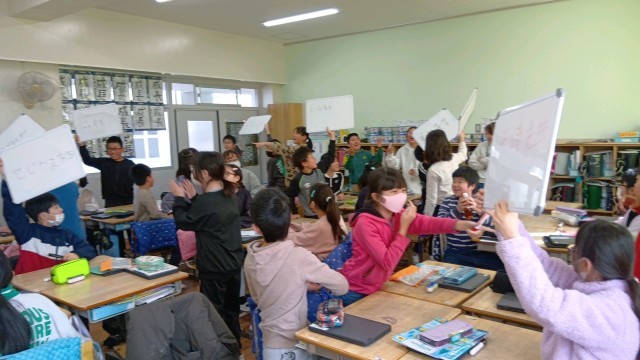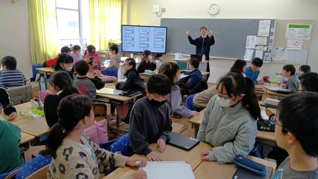 5年生の教室ではAETの先生のオールイングリッシュでのゲームをしていました。みんなネイティブの英語を聞き取って答えようと一生懸命です。AETの先生がいつも、どうすれば子どもたちが楽しく英語を学べるか、考えてくれています。Thank you!
