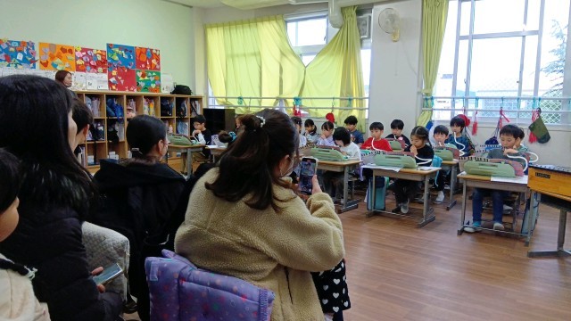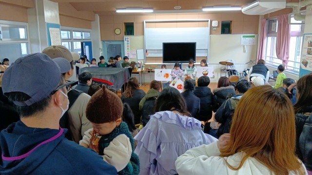 音楽だけではなく、各学年のテーマに沿った学習の成果を各グループが順番に前でプレゼンします。低学年の児童でも、これだけできるんだなぁと、子どもたちの可能性に驚かされます。先生方の配慮もさぞや…!