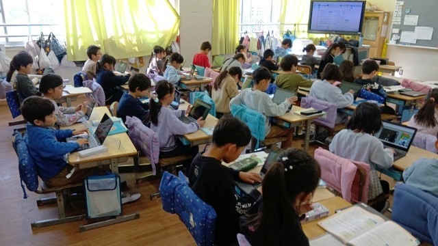 教科書の最後の方にある「学年のまとめの問題」をして、あまった時間は各自学習しているようです。だれもあそんでいません。AIドリルや、タイピングなどいろいろ選択肢があるので、みんな自分がやりたい勉強をしています。これは1人1台端末のすごい利点だと思います。もちろん、真面目に勉強に取り組むみんなの姿勢も花まるです!